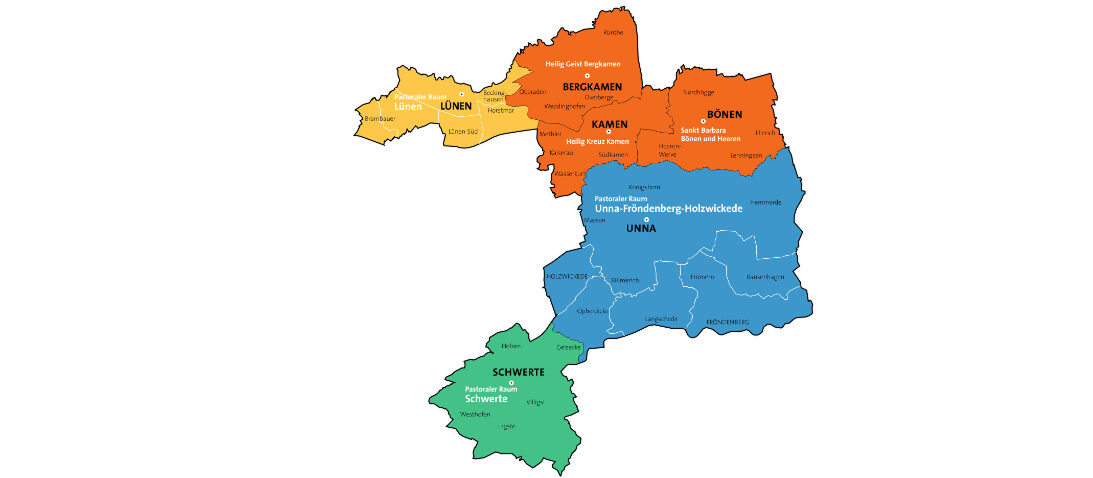3 Pfarreien und 3 Pastorale Räume bilden das Dekanat Unna